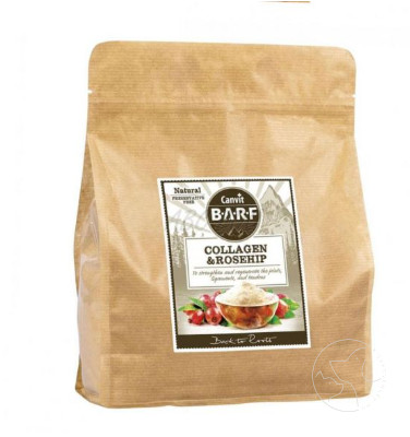 Hidrolizált kollagén és szárított csipkebogyó (C vitamin) az ízületek erősítésére és regenerálására fiatal és öregedő kutyák és macskák számára.
