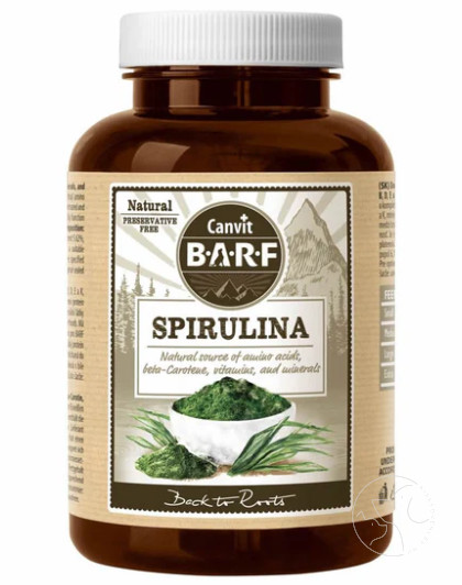 A spirulina egy szupertáplálék, egy természetes jól emészthető fehérjeforrás. Esszenciális aminosavakat, béta-karotin, B, D, E és K vitaminokat és ásványi anyagokat tartalmaz. Pozitív hatása van a vitalitásra és az immunrendszerre. Egy energiabomba az aktivitás és vitalitás támogatása érdekében aktív kutyáknak a gyógyulást, a megnövekedett fizikai aktivitást, betegséget, vagy a stressz időszakát követően.