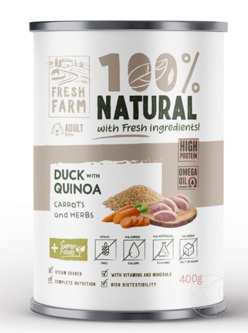 Vitaminokkal és ásványi anyagokkal dúsított, teljes értékű és kiegyensúlyozott pástétom húsdarabokkal kacsahúsból, quinoával, répával és gyógynövényekkel. Ideális kutyája mindennapi etetésre. Teljes értékű nedves állateledel felnőtt kutyák számára. ÖSSZETÉTEL: 30% kacsa, 25% csirke, 8% quinoa, 8% sárgarépa, 2% alma, vitaminok és ásványi anyagok, fűszernövény keverék, lazacolaj, petrezselyem, lenmag, alga. ADALÉKANYAGOK/kg: D3-vitamin (E671) 200 NE, Vit. E (3a370) 150 mg, cink (3b610) 15 mg, mangán (3b510) 3 mg, kalcium-karbonát 2 mg. ANALITIKAI ÖSSZETEVŐK: nyersfehérje 8%, zsírtartalom 7%, nyershamu 2,2%, nedvesség 75,0%, nyersrost 0,7%, kalcium 0,3%, foszfor 0,2%, nátrium 0,4%. Adagolási útmutató: Brit Paté & Meat ideális kiegészítő a száraz eledelhez is. Segíti a tápanyagfelvételt és folyadékbevitelt. Az egynapi adag aktivitástól és környezettől függően változó. A változatosság növelése és az étvágy fokozása céljából történő etetés esetén, ne feledje csökkenteni kutyája ajánlott napi rendszeres adagját. Szobahőmérsékleten etesse. Biztosítson kutyájának hozzáférést friss ivóvízhez. Száraz hűvös helyen tárolja. A doboz kinyitása után tartsa a hűtőszekrényben, felbontás után 48 órán belül kerüljön felhasználásra.