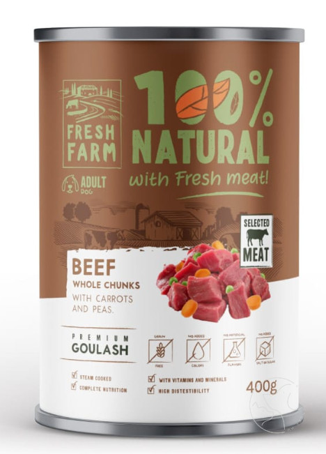 Vitaminokkal és ásványi anyagokkal dúsított, teljes értékű és kiegyensúlyozott nedves állateledel szaftos húskockákkal marhahúsból, répával és borsóval. Ideális kutyája mindennapi etetésre. Teljes értékű nedves állateledel felnőtt kutyák számára. ÖSSZETÉTEL: 65% marhahús, 25% húsleves, 4% sárgarépa, 4% borsó, vitaminok és ásványi anyagok, fűszernövény keverék, lazacolaj. ADALÉKANYAGOK/kg: D3-vitamin (E671) 200 NE, Vit. E (3a370) 150 mg, cink (3b610) 15 mg, mangán (3b510) 3 mg, kalcium-karbonát 2 mg. ANALITIKAI ÖSSZETEVŐK: nyersfehérje 10%, nyers zsír 6%, nyersrost 0,5%, nyershamu 2%, nedvesség 78,0%. Adagolási útmutató: Brit Paté & Meat ideális kiegészítő a száraz eledelhez is. Segíti a tápanyagfelvételt és folyadékbevitelt. Az egynapi adag aktivitástól és környezettől függően változó. A változatosság növelése és az étvágy fokozása céljából történő etetés esetén, ne feledje csökkenteni kutyája ajánlott napi rendszeres adagját. Szobahőmérsékleten etesse. Biztosítson kutyájának hozzáférést friss ivóvízhez. Száraz hűvös helyen tárolja. A doboz kinyitása után tartsa a hűtőszekrényben, felbontás után 48 órán belül kerüljön felhasználásra.