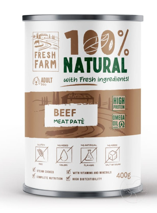 Vitaminokkal és ásványi anyagokkal dúsított, teljes értékű és kiegyensúlyozott pástétom marhahússal, amely ideális kutyája mindennapi etetésre. Teljes értékű nedves állateledel felnőtt kutyáknak. ÖSSZETÉTEL: marha 31%, csirke 22%, csirkemáj 4%, rizs 4%, kollagén, vitaminok és ásványi anyagok, lazacolaj. ADALÉKANYAGOK/kg: D3-vitamin (E671) 200 NE, Vit. E (3a370) 150 mg, cink (3b610) 15 mg, mangán (3b510) 3 mg, kalcium-karbonát 2 mg. ANALITIKAI ÖSSZETEVŐK: nyersfehérje 9%, nyers zsír 8%, nyershamu 2,5%, nedvesség 78%, nyersrost 0,5%, kalcium 0,1%, foszfor 0,3%, nátrium 0,2%. Adagolási útmutató: Ideális kiegészítő a száraz eledelhez is. Segíti a tápanyagfelvételt és folyadékbevitelt. Az egynapi adag aktivitástól és környezettől függően változó. A változatosság növelése és az étvágy fokozása céljából történő etetés esetén, ne feledje csökkenteni kutyája ajánlott napi rendszeres adagját. Szobahőmérsékleten etesse. Biztosítson kutyájának hozzáférést friss ivóvízhez. Száraz hűvös helyen tárolja. A doboz kinyitása után tartsa a hűtőszekrényben, felbontás után 48 órán belül kerüljön felhasználásra.