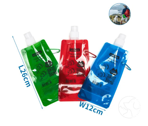 Hordozható vízzsák kutyáknak, 480 ml, összehajtható, könnyű, zöld/kék/piros színekben.
