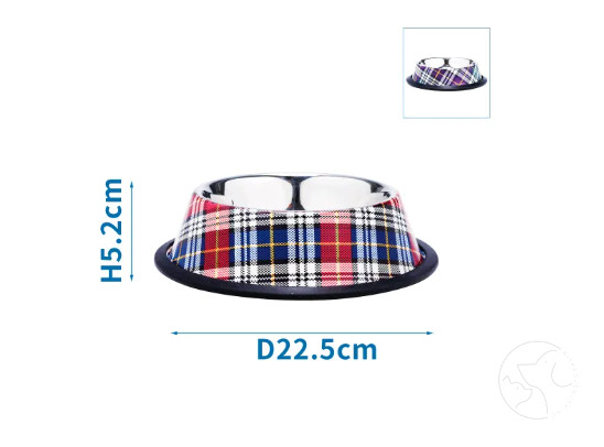 Ez a 450 ml űrtartalmú rozsdamentes acél kisállat tál ideális választás kutyák számára mind etetéshez, mind itatáshoz. Tartós anyagának köszönhetően hosszú élettartamú és ellenáll a rozsdának, így beltéri és kültéri használatra egyaránt alkalmas. A sokszínű, pléd mintás külső esztétikus megjelenést kölcsönöz, miközben könnyen tisztítható és higiénikus megoldást nyújt a mindennapokban. Stabil kialakítása révén nem borul fel könnyen, így kedvence kényelmesen fogyaszthatja belőle ételét vagy vizét.
