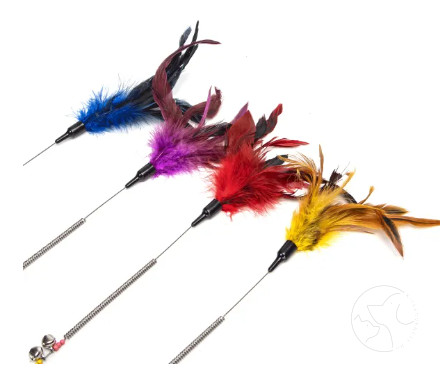 A Nobleza exkluzív macskaelőzetes egy 59 cm hosszú, színes tollas játék, amely tökéletes a macskák vadászösztönének serkentésére. Élénk színei (piros, sárga, lila, kék) felkeltik a cicák figyelmét, a rugós kialakítás pedig extra rugalmasságot és könnyű irányíthatóságot biztosít játék közben. A természetes toll formája ösztönzi a macskákat a mozgásra, vadászatra és ugrálásra, így nemcsak szórakoztató, hanem aktív testmozgást is nyújt. Ideális beltéri játék, amely erősíti a gazdi és kedvenc kapcsolódását, miközben levezeti a felesleges energiát.