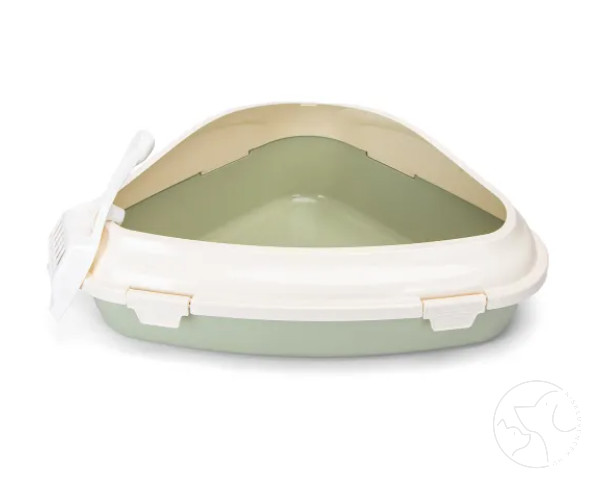 Ez a háromszög alakú macskaalom tálca alomlapáttal praktikus megoldás minden macskatartó számára.