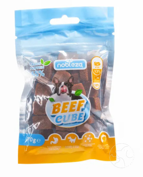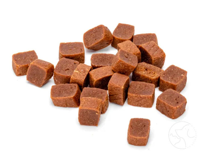 A marhahús ízű húskockák ízletes és tápláló jutalomfalatok, amelyek ideálisak minden korú és méretű kutyának. Magas fehérjetartalmuk támogatja az izmok fejlődését és a mindennapi aktivitást, miközben alacsony zsírtartalmuk segít az egészséges testsúly megőrzésében. Könnyen emészthető és gyorsan felszívódó összetevőkből készül, így nem terheli meg az emésztőrendszert. Rendszeres rágásukkal hozzájárulnak a szájhigiénia fenntartásához, erősítik a fogakat, az ínyt és az állkapcsot. Praktikus, színes tasakos kiszerelésben kapható, amely megőrzi a frissességet és aromát.