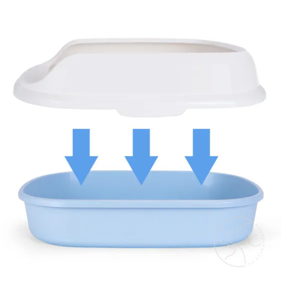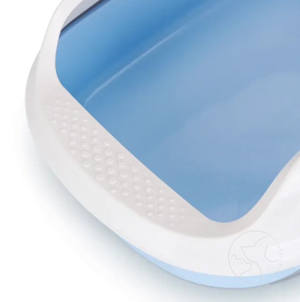 Nyitott kialakítása kényelmes hozzáférést biztosít a cicának, a magasított perem pedig megakadályozza az alom kiszóródását.