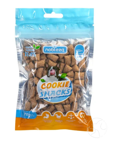 - Összetevők: kukoricakeményítő, lazac, mogyorófehérje, glicerin, kálium-szorbát