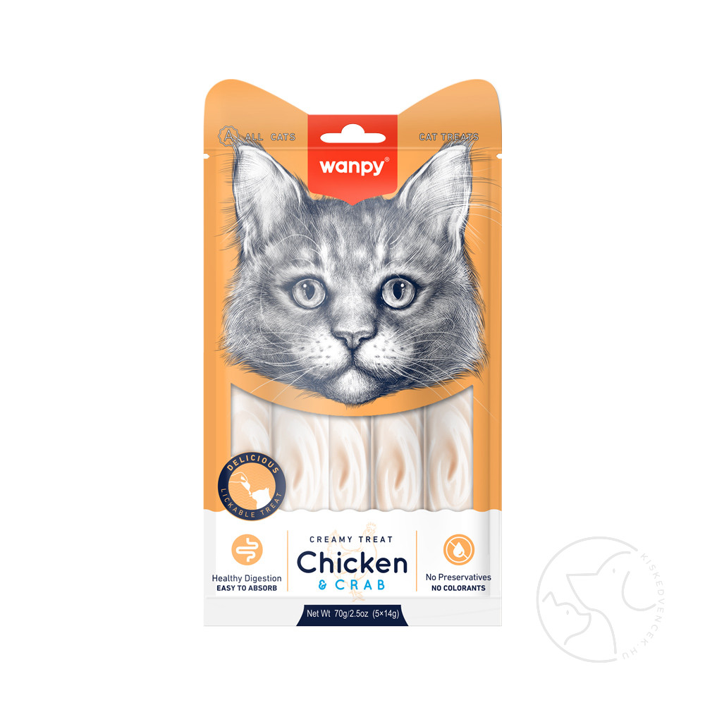 A Wanpy Creamy Treat Chicken & Crab egy prémium minőségű, krémes állagú macska