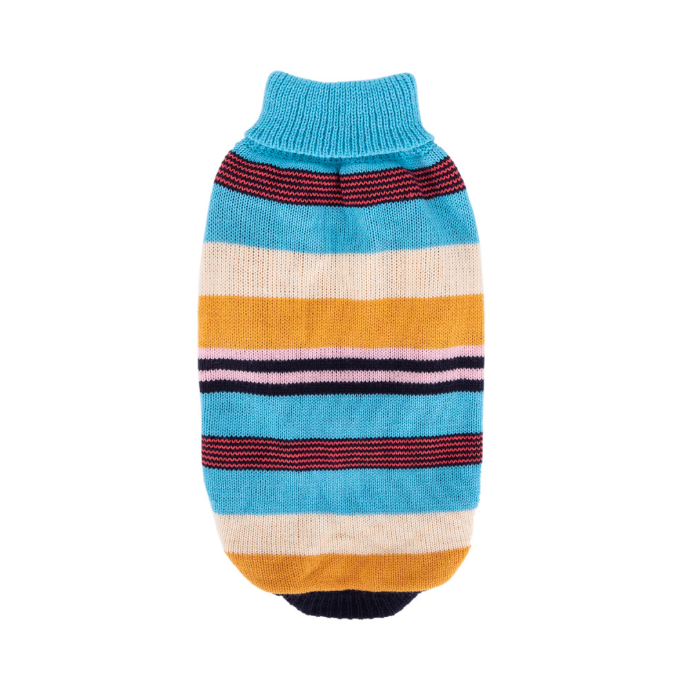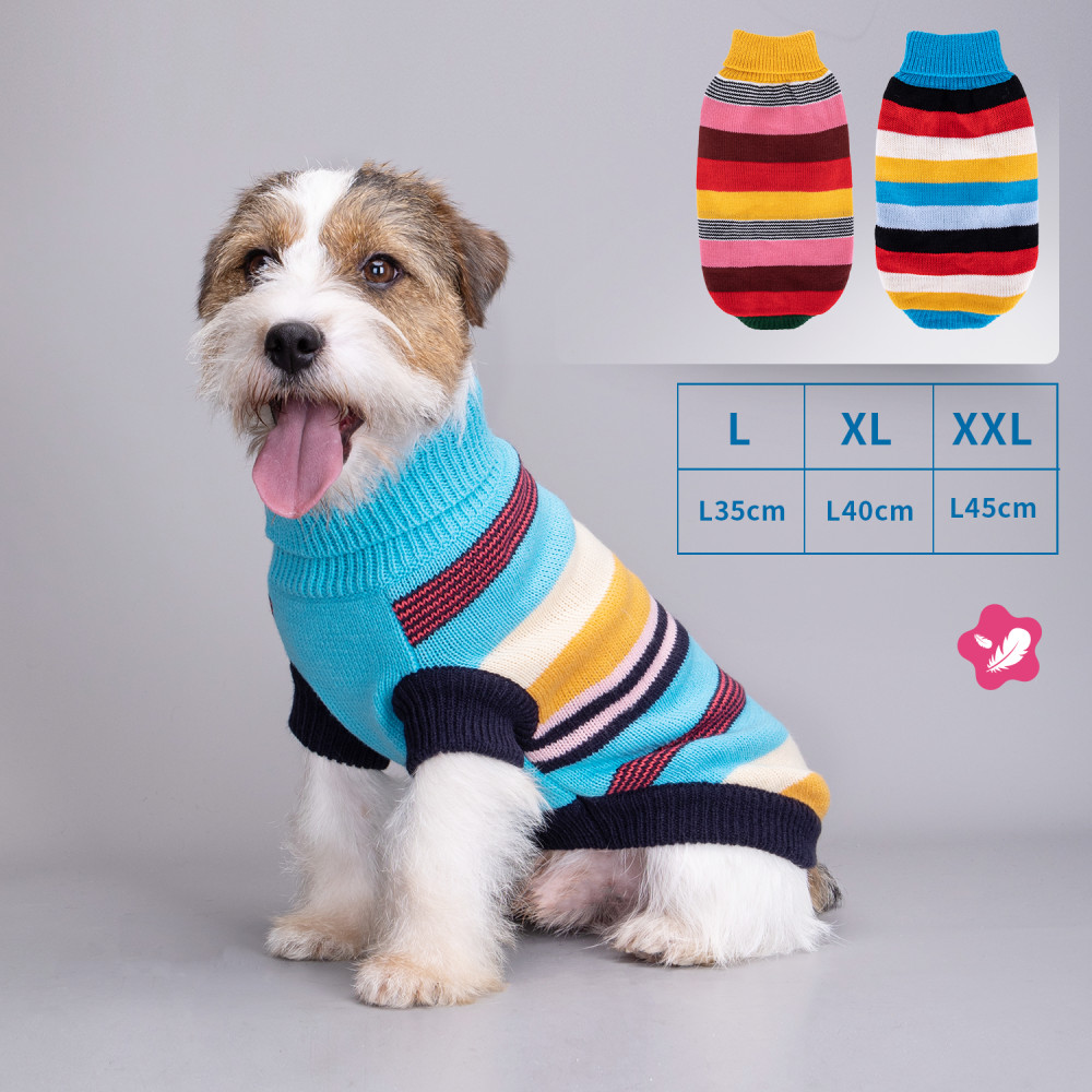Vidám csíkos kutyapulcsi sötétkék ujjal, XL
