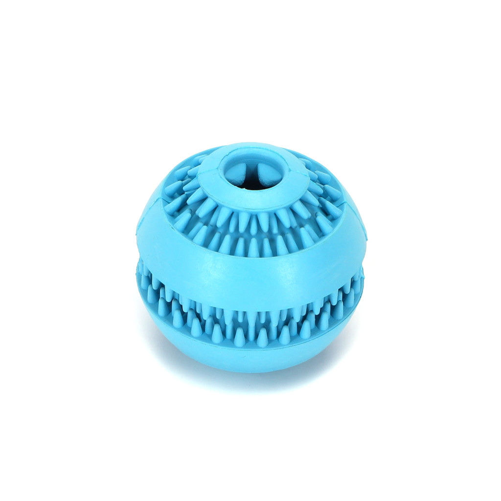Erős gumianyagból készült, vidám színű labda. Üreges, így jutalomfalat elrejthető benne, melyet az állat a labda használata közben megehet. Kopás és harapás álló, segít megtisztítani a házi kedvencek fogait, valamint oldja a stresszt és az unalmat.